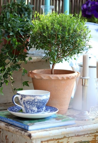 Летом мирт можно выставлять на открытый воздух, в место, где обеспечена защита от прямого полуденного солнца. К новому уровню освещенности растение следует приучать постепенно. Некоторые цветоводы для закалки растения на лето закапывают горшок с миртом прямо в грунт.