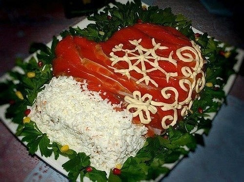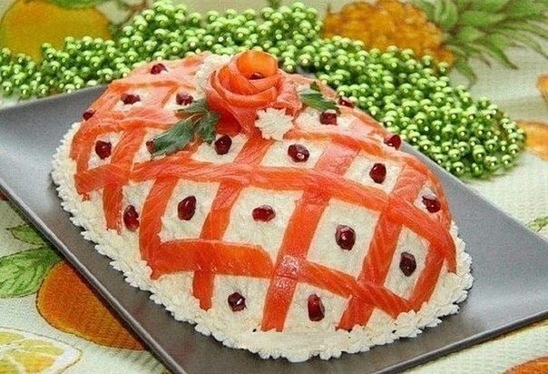 8) Салат «Варежка Деда Мороза» с красной рыбой