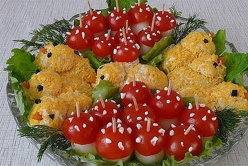 22. САЛАТ "ПТЕНЧИКИ В МУХОМОРАХ"